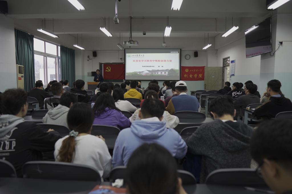 唐城围绕“历史是最好的教科书”“聚焦重点抓好学习教育” “川农大115年办学历程”“做奋斗的机电人”四个方面进行全面讲授,重点讲解了习近平总书记关于学习党史的九条深刻认识。他强调,要聚焦“学历程、识大势”“学贡献、促一致”“学初心、保本色”“学精神、重传承”“学经验、获启迪”五个方面,抓好党史学习教育。他指出,历史是最好的教科书,作为川农学子,要认真学习党史,继承党的优良传统,发扬党的奋斗精神,传播好党的声音、讲好中国故事,要传承弘扬“川农大精神”,将青春梦想与川农大梦想、中国梦紧密结合,满怀希望去筑梦、勇敢无畏去追梦。