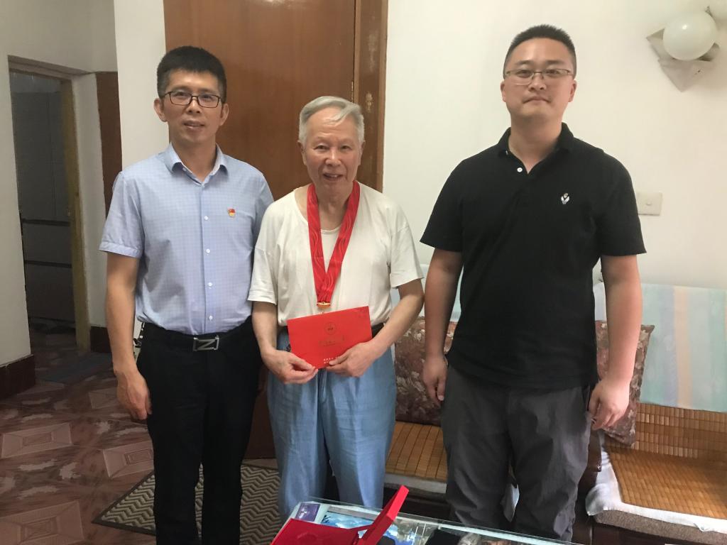 7月1日,在中国共产党百年华诞之际,公司党委书记唐城、公司党委副书记黄锎靓一行看望学院老党员,向他们发放了慰问金,送去了党组织的关怀和温暖,向他们致以节日的问候和祝福,并向获得“光荣在党50年”荣誉表彰的老党员颁发纪念章。