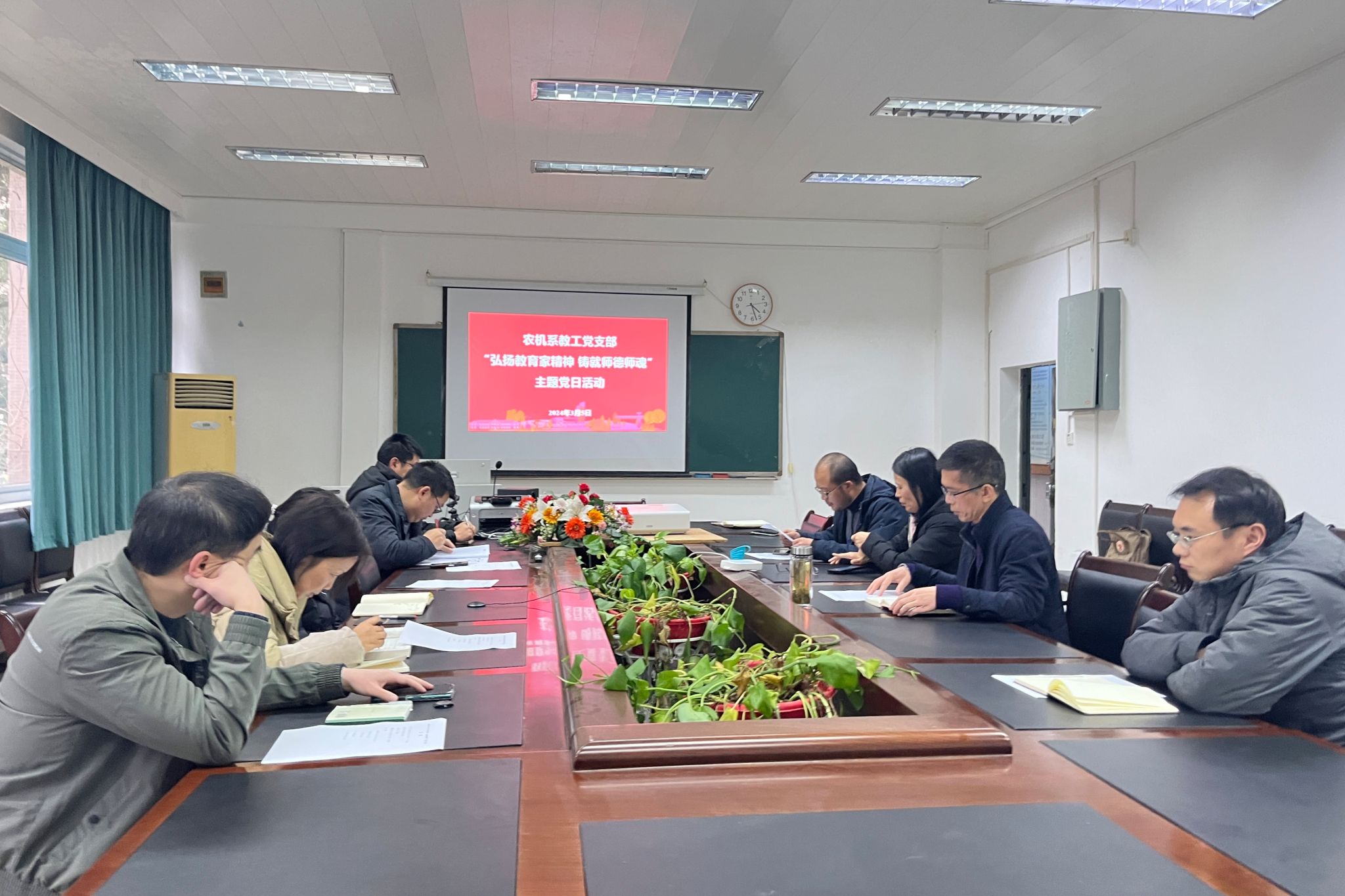3月5日,xc体育各教工党支部开展“弘扬教育家精神 铸就师德师魂”主题党日活动。作为“双带头人”工作室的农机教工党支部在6教201会议室举行,公司党委书记唐城、经理许丽佳、农机系教工党支部全体党员参会。
