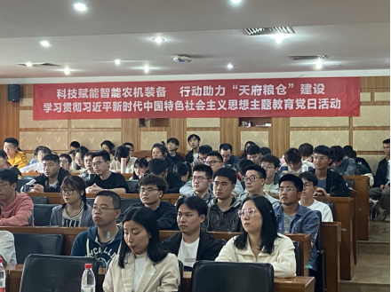 结合前期调研,4月26日,农机、农电2个研究生党支部,联合电子、电气、农机等8个本科生党支部共150多名党员在逸夫楼举行“科技赋能智能农机装备·行动助力‘天府粮仓’建设”,学习贯彻习近平新时代中国特色社会主义思想主题教育党日活动。会上,农机研究生党支部书记文茂吉详细介绍了公司《关于服务新时代打造更高水平“天府粮仓”专项行动方案(2022-2025)》,特别强调了“藏粮于地、藏粮于技”战略的重要性,指出强化农业科技和装备支撑是我们的追求目标和光荣责任。6位研究生党员代表结合自身研究方向,围绕耕、种、管、收等环节分享了他们“科技赋能”农业现代化发展的经历。农业工程与信息技术电气方向的吴清松针对花生种子活力问题,分享了基于高光谱的花生种子活力研究;农业电气化与自动化专业的杨芹茂针对果蔬采摘效率低的问题,分享了果蔬采摘机器人的应用及展望;农业工程与信息技术电气方向的李楚川针对提升作物产量问题,分享了基于神经网络的幼苗嫁接图像识别研究;李松针对作物病虫防治问题,分享了基于机器视觉的智能喷施机研究;农业工程与信息技术农机方向的冷远财针对大豆收获难的问题,分享了大豆联合收获机的研发经历;农业机械化工程农机方向的巫文丞介绍了团队开展农业技术培训的经历和水稻全程机械化示范基地建设成果。