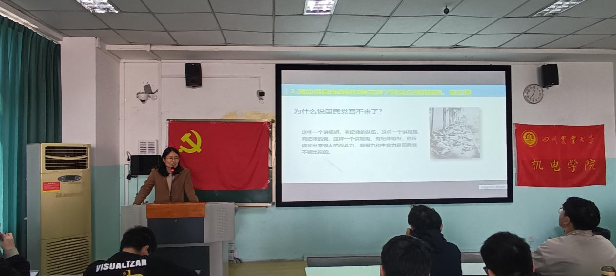 3月30日中午,公司2023年春季入党积极分子培训班第五次专题党课在一教举行,经理许丽佳以《保持党的优良传统,做“讲规矩,有纪律”的合格党员》为题为95名入党积极分子培训班学员做专题授课。