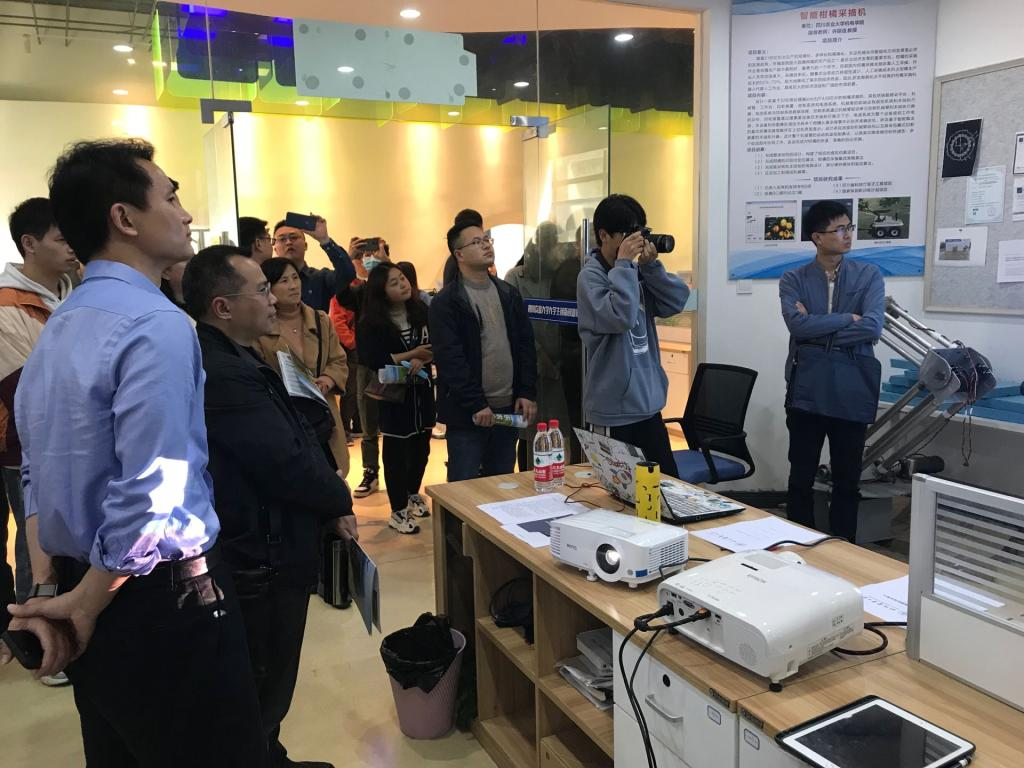 工作组实地走访了雅安校区老员工创业孵化园、老员工创新创业俱乐部,考察了乐农科技、智能柑橘采摘机、智能玉米播种机器人等入驻企业的创业情况,深入了解了孵化基地建设规划、管理制度、帮抚措施等情况。