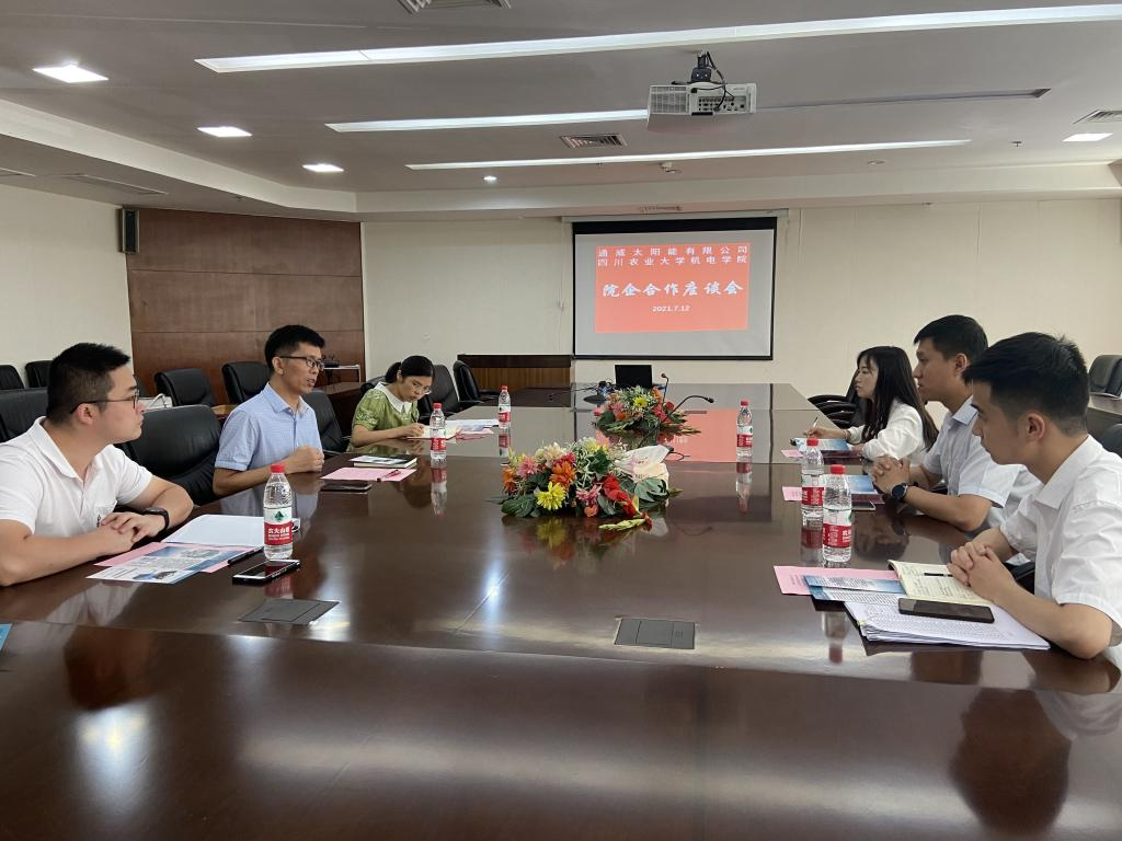 7月12日,xc体育与通威太阳能公司召开院企合作座谈会,商议院企继续合作事宜,签订第二期“通威太阳能班”合作协议。公司党委书记唐城、党委副书记黄锎靓、通威太阳能公司人力资源部部长叶龙及相关负责老师参加仪式。
