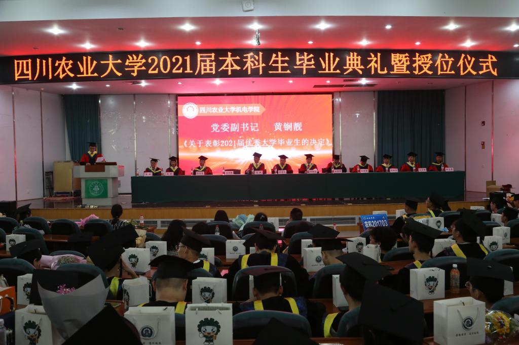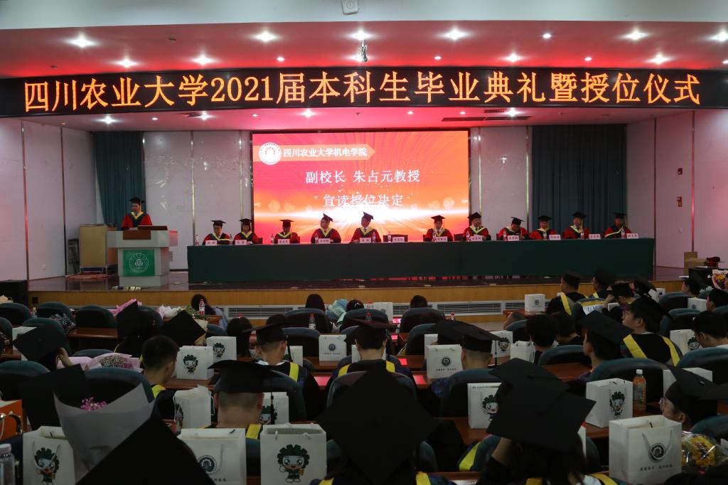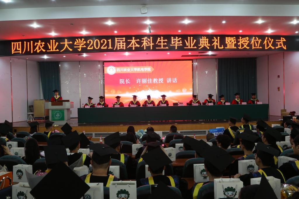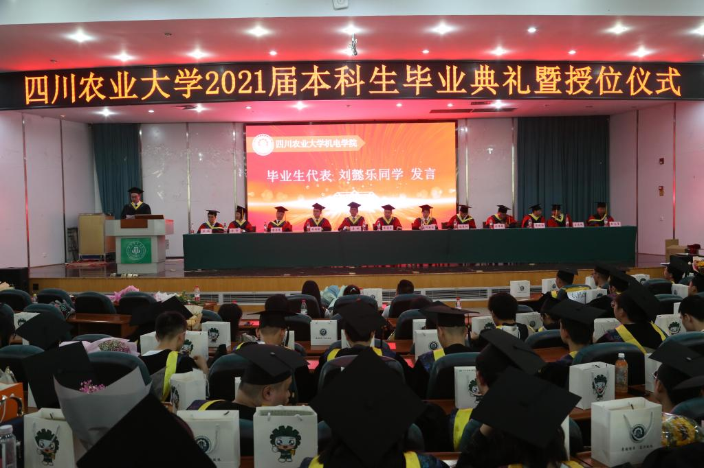 农机系系主任吴维雄代表xc体育全体教师上台发言。他感慨我们处在一个伟大的时代,面临百年未有之大变局,个人命运与国家民族的命运紧密相连,希望同学们胸怀远大理想,努力拼搏去实现,而不能仅仅满足于做一个躺平青年。毕业生代表刘懿乐对学院的关心、培养表示衷心的感谢,表示一定会把川农大精神铭记于心,带上老师们的嘱托,带上母校的期望,做胸怀大志并脚踏实地的人,做德才兼备并勇于创新的人,做富有责任并敢挑重担的人!
