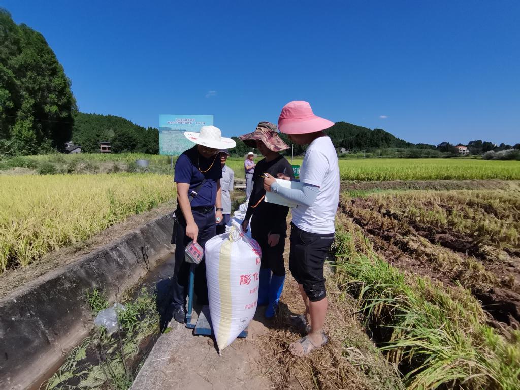 9月20日,四川省农业农村厅主持并邀请有关专家,对公司承担的农业农村部农业重大技术协同推广项目—“四川省水稻绿色提质高效集成技术推广应用”课题南部示范区进行了田间现场验收。农学院任万军教授担任该项目的技术首席,xc体育雷小龙副教授担任南部县技术专家负责项目实施。四川省农业科学院水稻高粱所徐富贤研究员、四川省农业农村厅种植业与农药肥料处刘代银研究员、冯泊润高级农艺师、南充市农业农村局杜晓宇和曾宪堂推广研究员组成的专家组进行了本次验收。