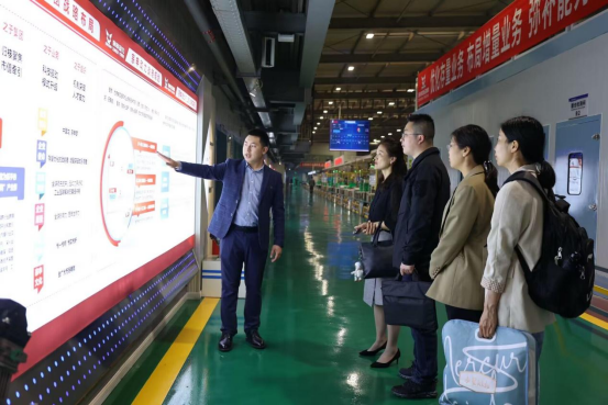 在交流座谈会前,侯莉、黄锎靓一行在工作人员带领下参观企业展厅、了解企业文化、到访生产一线,详细了解和感受工作环境和工作状况。