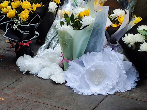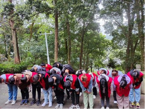 4月5日上午,天空下着毛毛细雨,但并不能阻止同学们参加活动的热情,同学们带着自己亲手制作的纸花前往学校附近的天全烈士陵园瞻仰在天全白土坎牺牲的红四方面军烈士。前来瞻仰烈士的人很多,经过排队等待,最终同学们在人民革命烈士纪念碑前献上了自己制作的纸花并且鞠躬悼念为国捐躯的烈士先辈们。