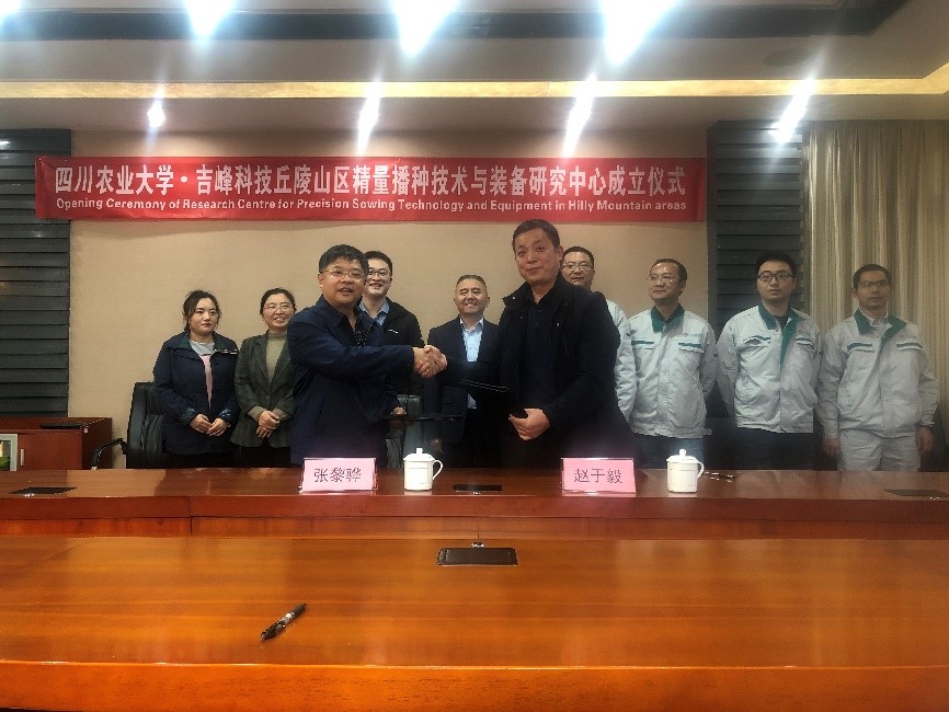 为进一步深化校企产学研合作,本着资源共享、互惠互利、共同发展的原则,10月31日,在吉峰三农科技服务股份有限公司举行的“丘陵山区精量播种技术与装备研究中心”成立的签约仪式上,公司xc体育与吉峰三农签订了围绕粮食及经济作物开展适合丘陵山区精量播种技术与装备研究的产学研合作协议,以加快推进大豆玉米带状复合种植专用机具研发。