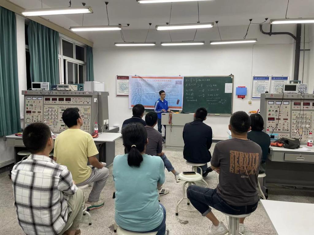 9月21日晚,xc体育为2022年度新进两名实验助理举办了教学交流会,交流会在6-305电子学实验室进行。两位老师首先根据自己专业特色和承担的课程,结合挂图、板书等形式对指导的实验课程进行综合讲解,然后在实验平台上现场演示操作实验过程。老师们精神饱满、准备充分,讲解细致入微,演示生动熟练,充分展示了较好的教学水平和良好的敬业精神。