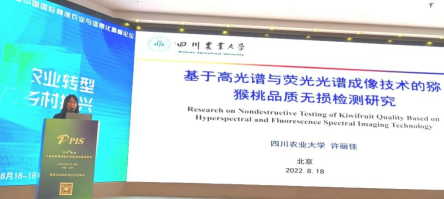 许丽佳教授作了 “基于高光谱和荧光光谱成像技术的猕猴桃品质无损检测研究”的主题分享,详细介绍了团队基于光谱成像技术的猕猴桃多个品质参数以及货架期无损检测模型的研究成果,以及近年来致力于将光谱成像、图像处理、机器学习和人工智能相结合的农产品品质无损检测关键技术及智能分选装备的研究心得,同与会嘉宾一起探索智慧农业发展之路。