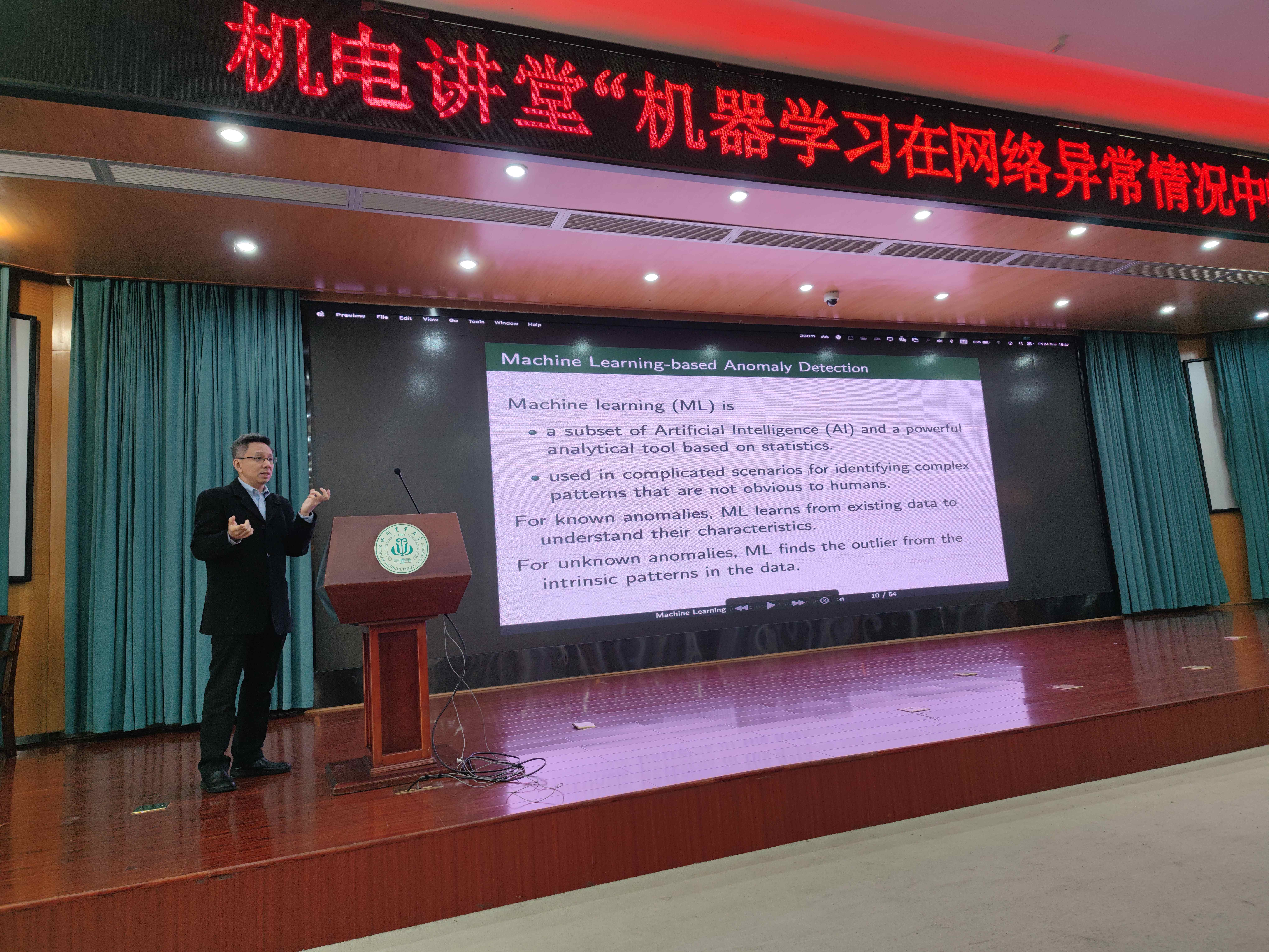 11月24日下午,新西兰维多利亚大学Winston K.G. Seah(佘崑元)教授为公司和信工院师生带来题为“人工智能在网络异常检测中的应用”的学术报告,公司电子系副主任黄鹏副教授以及xc体育、信工院200余名本科生、研究生参会。会议由黄鹏主持。