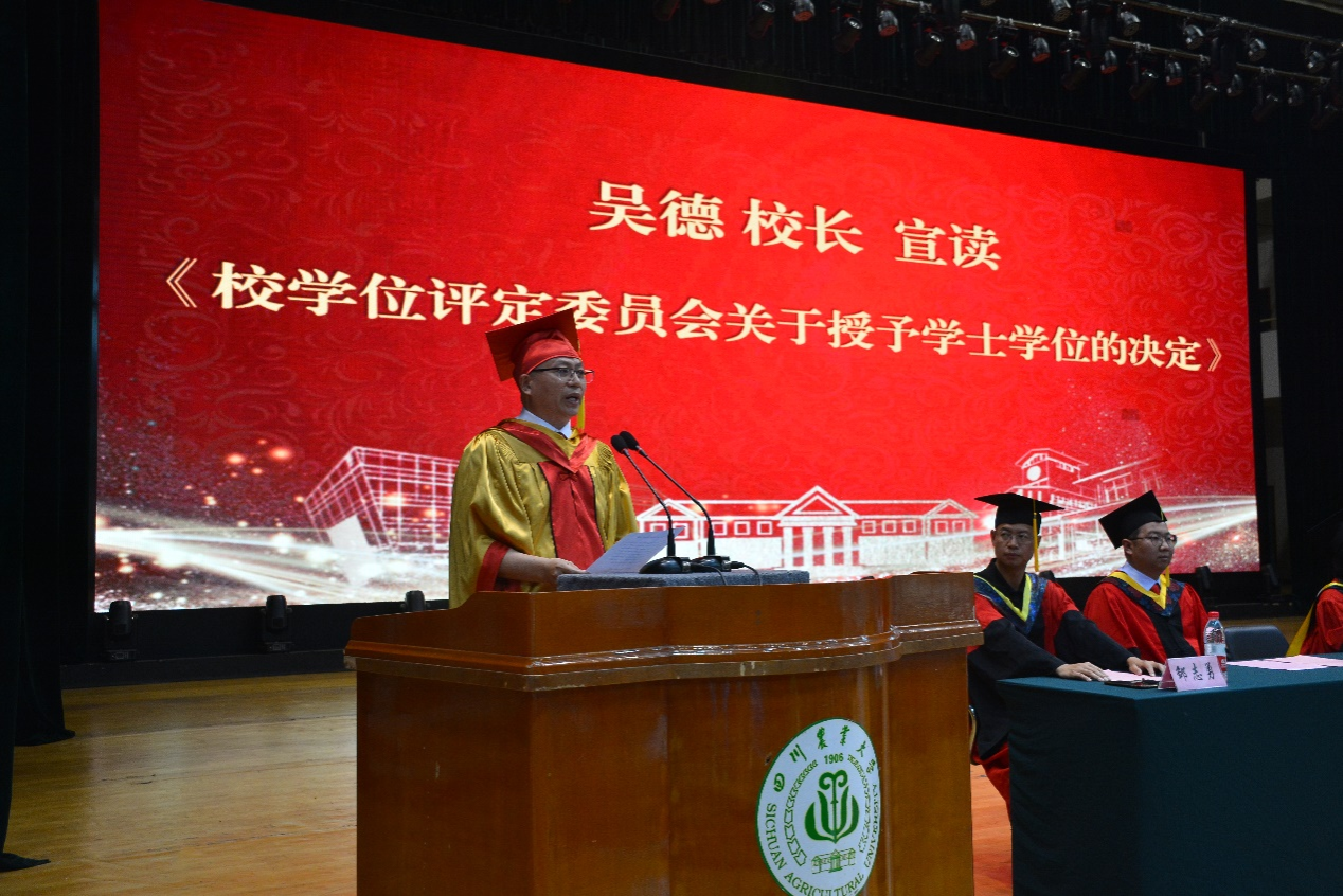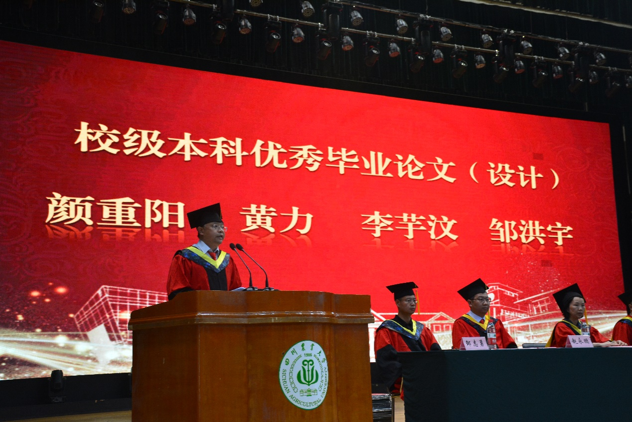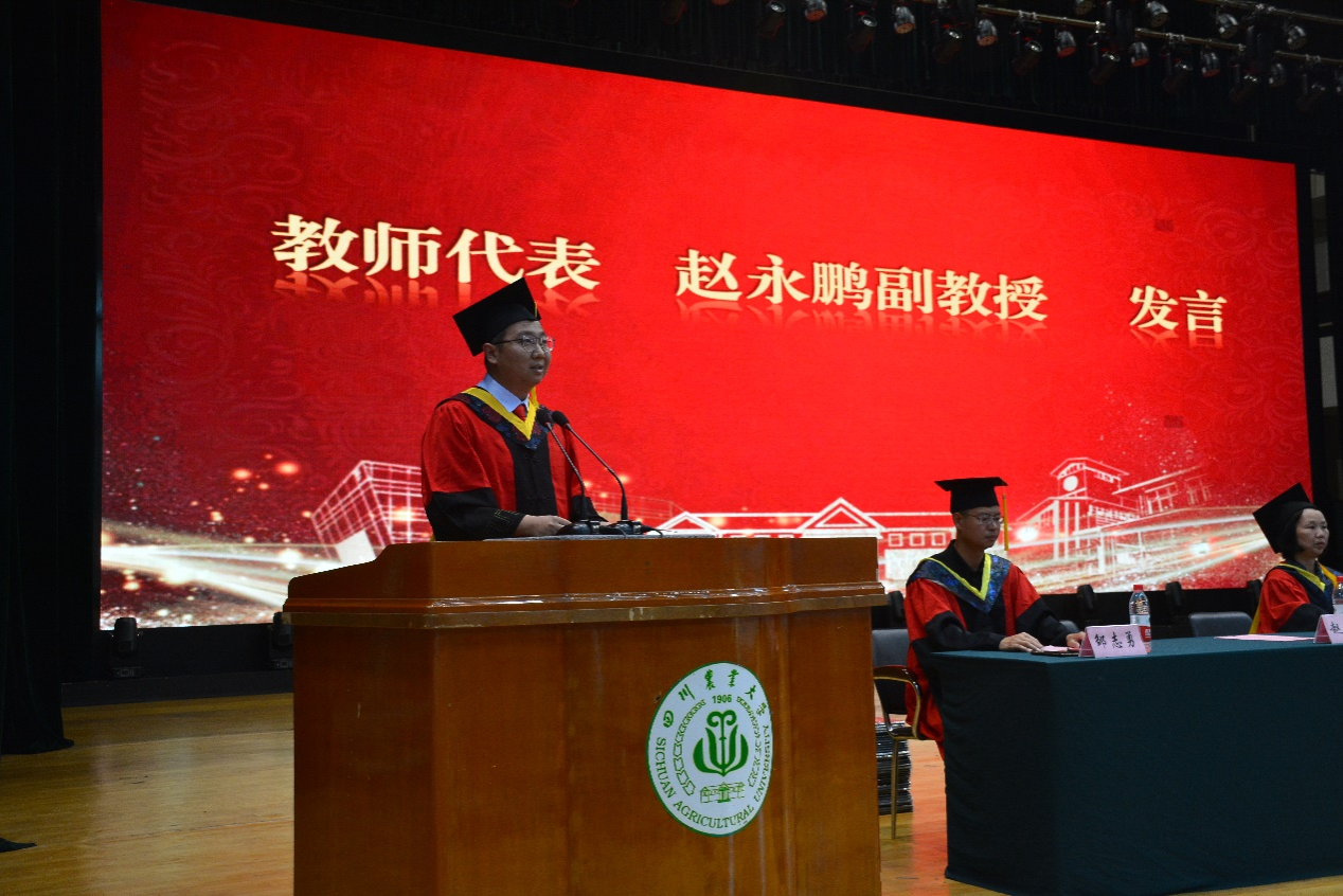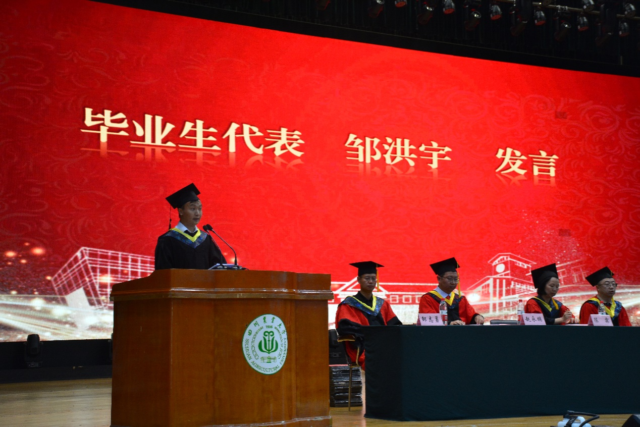 来自农业机械化及其自动化专业的毕业生代表、优秀员工标兵邹洪宇追忆了大学的青葱岁月,对辛勤付出的老师表达了感谢,同时表示将牢记川农大精神,在今后的工作学习中不断成长,成为造福社会的栋梁之材。