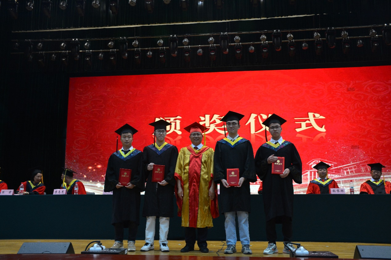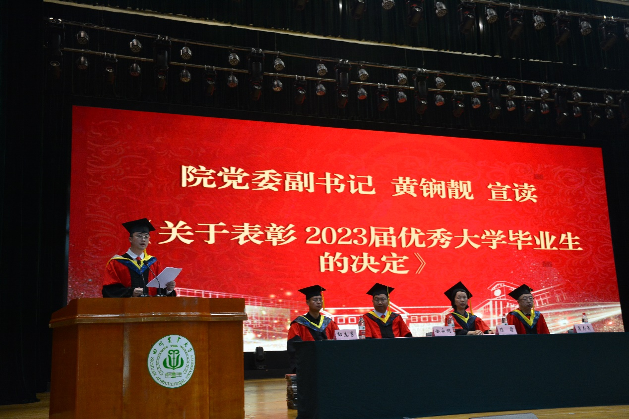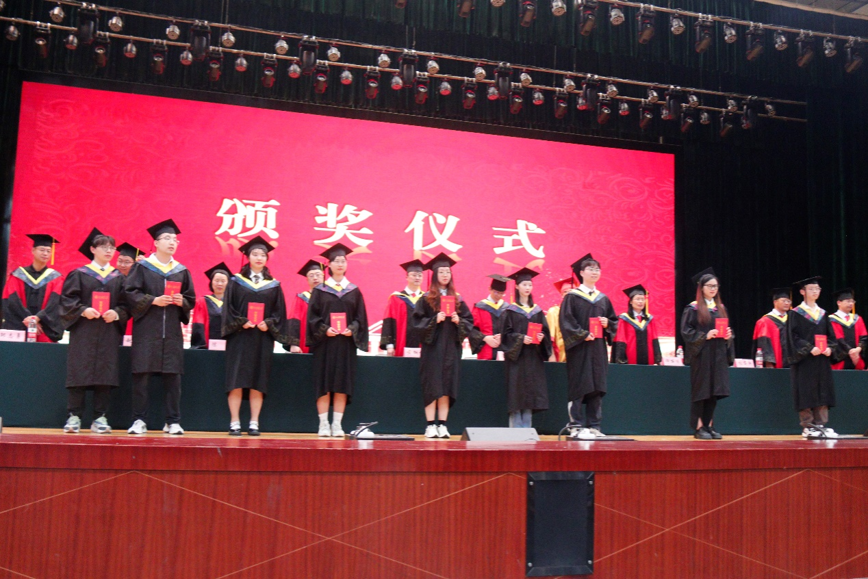 张黎骅宣读了《关于表彰2023年优秀学士学位论文(设计)的决定》,黄锎靓宣读了《关于表彰2023年优秀大学毕业生的决定》。主席台就坐的领导和老师为获得上述奖项的毕业生颁发荣誉证书,并鼓励他们今后乘风破浪、再创佳绩。