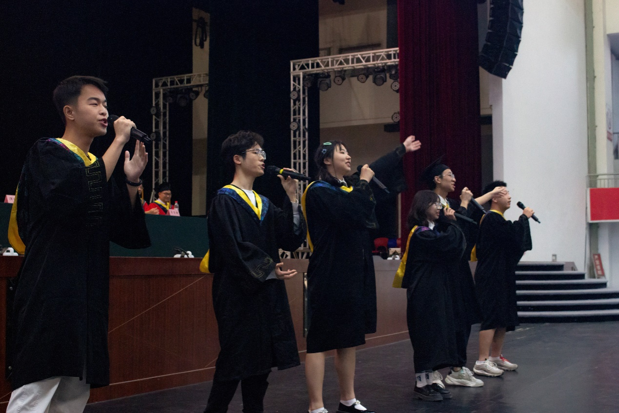 授位仪式接近尾声,会场突然响起旋律《那些年》,毕业生代表惊喜献唱,将全场氛围带至高点,最后在《我和我的祖国》明快热烈的歌声中,xc体育2023本科生毕业典礼暨授位仪式圆满落下帷幕。“此去乘风,鹏程万里。”毕业是终点也是起点,祝愿xc体育的毕业生们前程似锦、未来可期。