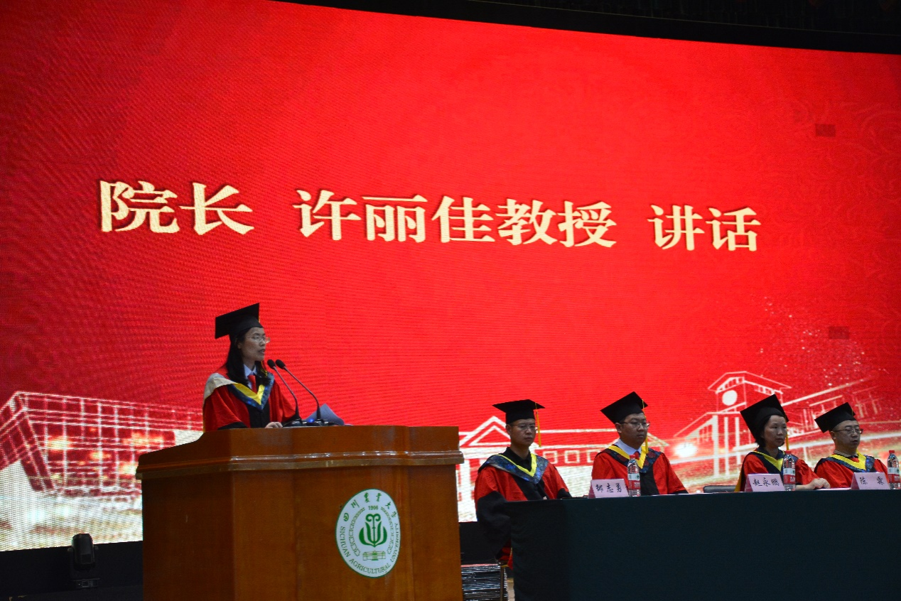 毕业典礼在庄严的国歌声中拉开帷幕,许丽佳经理致辞。她代表教职工对圆满完成学业的2023届毕业生表示热烈的祝贺,同时希望同学们牢记“追求真理,造福社会,自强不息”的校训,肩负使命,立志成才,将川农大精神传播至四海八方。
