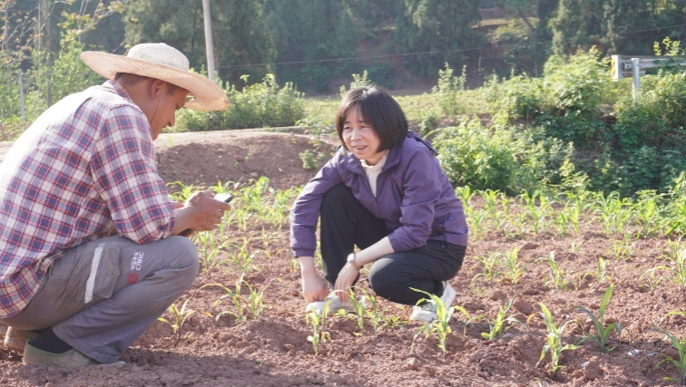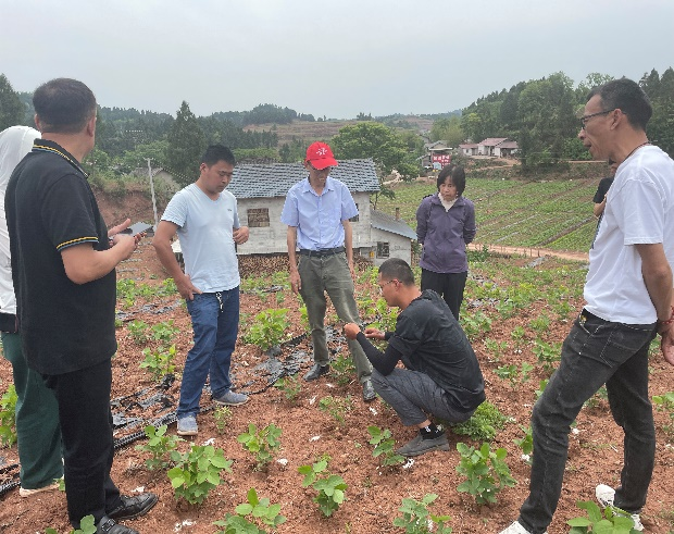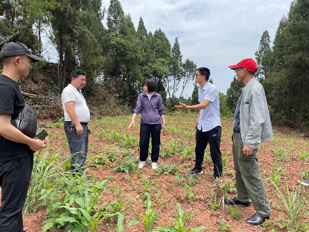 14日团队一行来到乐至县中天镇叶家村、中天镇大楼湾种植示范片和佛兴镇临江社区、回澜镇牛场坝村等地。针对新开垦的撂荒地肥力不足,大豆苗施肥未按规范实施导致烧苗等问题,吕小荣教授一行与内江市农业农村局的相关工作人员和当地农户进行了相关问题的探讨并提出宝贵建议。
