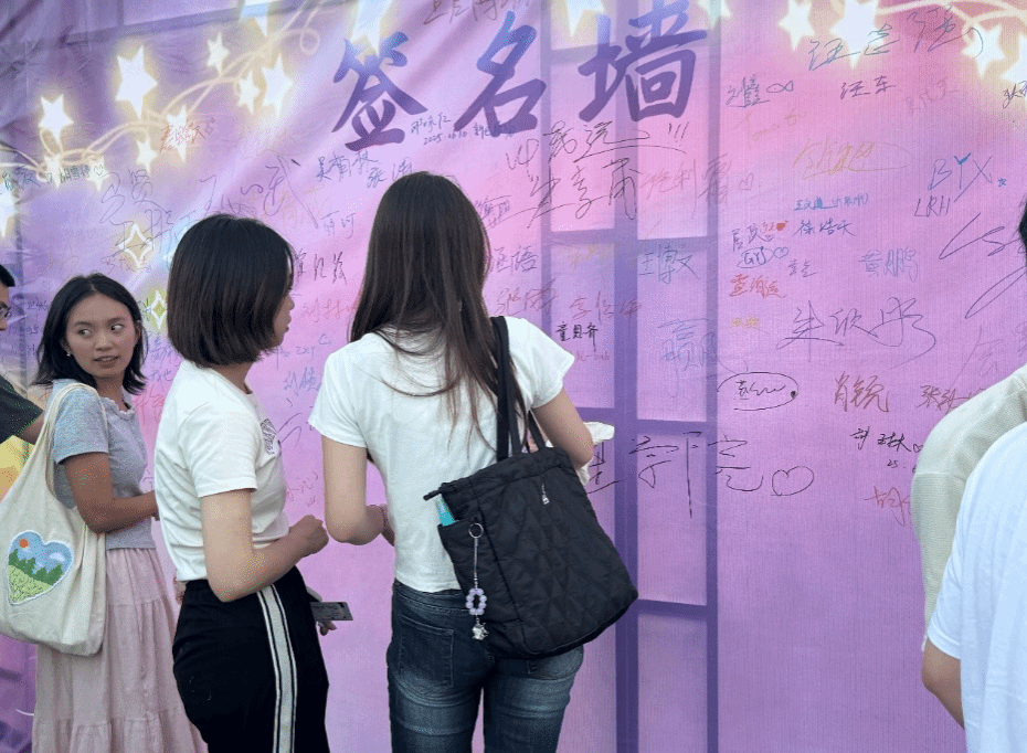 图为到场观众在签名墙上签名