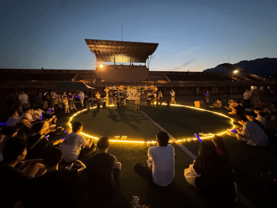 随着最后节目《爱的回归线》的旋律响起,晚会在明亮的月光和温柔的歌声中落下帷幕。灯光渐暗时,全场打开泡沫荧光棒,汇成一片闪烁的光芒,毕业生们肩并肩合唱,泪水与笑容在夜色中交织。“我们的脸一如从前,只一瞬抵过沧海桑田”,这场持续近三小时的音乐晚会,不仅是对大学时光的深情回望,更是一场充满力量的启程仪式。