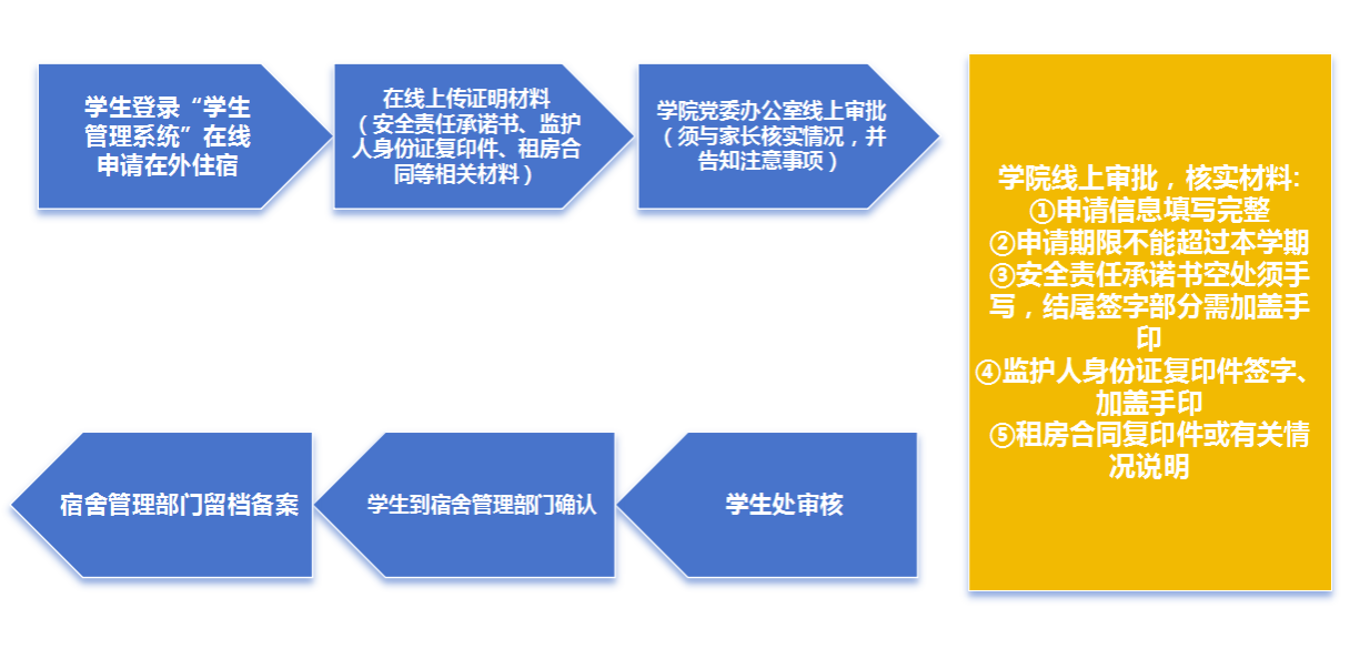 要申请校外住宿同学需本人在学工网进行申请并按要求上传相关材料,同时需于10月19日18:00前将纸质材料提交至综合楼323助管处进行线下审核,相关材料包括: