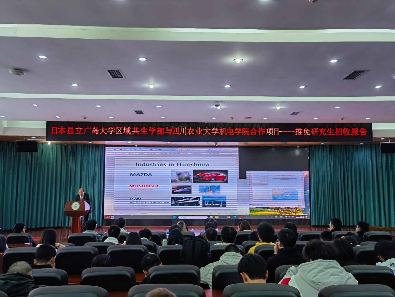 11月28日下午,在雅安校区十教一楼学术报告厅举行了日本县立广岛大学区域共生学部与xc体育合作项目——推免研究生招收报告,日本县立广岛大学大学肖业贵教授、重安哲也教授、折本寿子教授参与报告宣讲,公司电气系主任王玉超副教授、团委副书记周书玉以及xc体育200余名本科生参会。会议由王玉超主持。