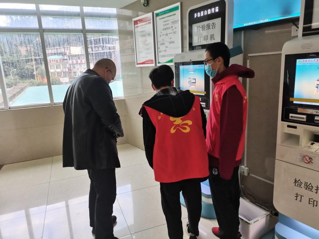 11月4日,xc体育团委志工部带领志愿者在雅安市人民医院开展了为期三小时的志愿公益活动。活动过程中志愿者们积极引导完成扫健康码、场所码的必要流程,在自助取票机前帮助有需要的人取票,维持排队点的秩序,协助医院附近禁烟等。