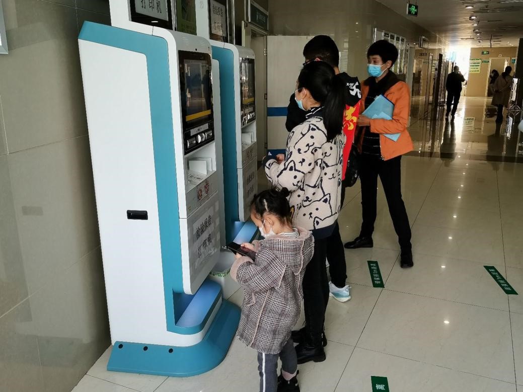 (图为志愿者协助患者于自助取票机旁取票 何刘 摄)