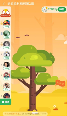 根据报名情况,权益部同学将所有参加同学分为8组,每组需在支付宝蚂蚁森林中创建合种。通过使用支付宝线下支付、共享单车、运动行走、网购火车票等低碳行为产生并收取绿色能量,此能量将作为用来灌溉合种的树。绿色能量积攒到一定数目后可以换取对应种类的树木,并在干旱地区种下一棵真正的树。参加活动的同学需要至少连续15天每天在合种中浇水200-1000克,并且每日步数需要达到1万步以上。