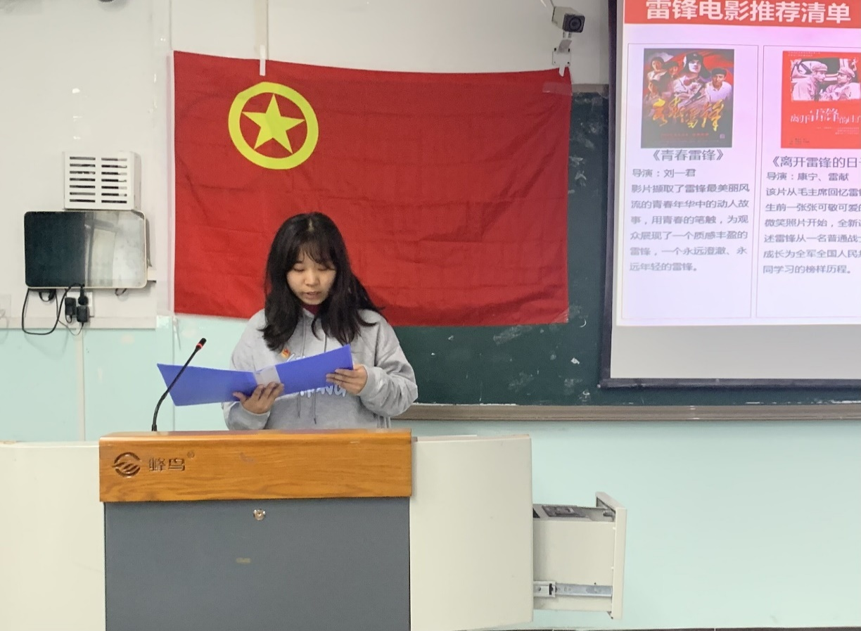 活动开始,同学们齐唱团歌并集体学习了本期的青年大学习,视听结合,将精神传承落到实处。然后进行“传承和弘扬雷锋精神”主题微团课,了解了雷锋的生平纪实及雷锋精神的丰富内涵。一组同学进行了雷锋经典歌曲的演出,分享了雷锋相关题材电影的观后感,体现了同学们对雷锋精神的充分学习和了解。