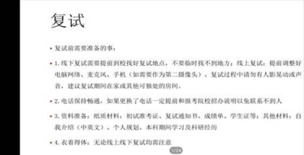 考取兰州大学的郭平同学结合自己的经历分享了研究生复试的过程,指出面试一般控制在二十分钟内,主要包括自我介绍、专业知识问答以及老师提问三个环节,并对每个环节的注意事项做了详细说明;考取东北大学的杨万哲通过PPT一一罗列要点,分享了复试前的准备事项和复试时应对的小技巧;在分享复试准备的基础上,考取中国农业科学院的申颜青同学结合考研成绩进行细致分析,指出初试与复试成绩各有一定比重,不能就较高的初试成绩而沾沾自喜,也不要因为初试成绩的不够理想而妄自菲薄,复试既可以是大家成为“逆袭黑马”的垫脚石,也可能是让大家马失前蹄的的一大败笔;考取电子科技大学的万优同学与员工们分享了复试心态调试,她说到:例如面对老师容易紧张,因本科成绩不理想、没有竞赛和科研项目、没通过英语四六级考试等而信心不足,一定要在考前做好心理建设,提前多次模拟面试场景,良好积极的心态有时候能够让自己看起来更优秀。