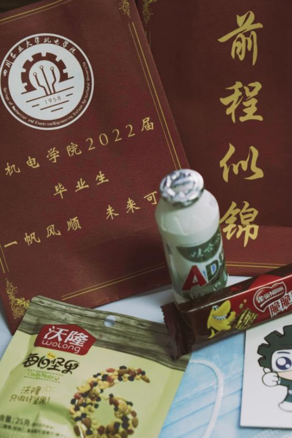 xc体育为2022届毕业生精心准备了600份“毕业生大礼包”,做到全员全覆盖,参与送祝福活动再额外赠送。福袋外有“祝xc体育2022届毕业生一帆风顺 未来可期 前程似锦”字样,内含寓意“信念坚不可摧”的每日“坚”果、“含笑走向未来”的娃“哈哈”AD钙奶、“一心一意为梦想拼搏”的脆脆鲨威化巧克“力”和疫情必备的口罩两只。同时,xc体育分别还向同学们征集了校园美景,以及对毕业生考研、就业的祝福语“研途有你,披荆斩棘”“企能不爱,栋梁之材”,以此定制成专属明信片制作“考研大礼包”和“求职大礼包”。