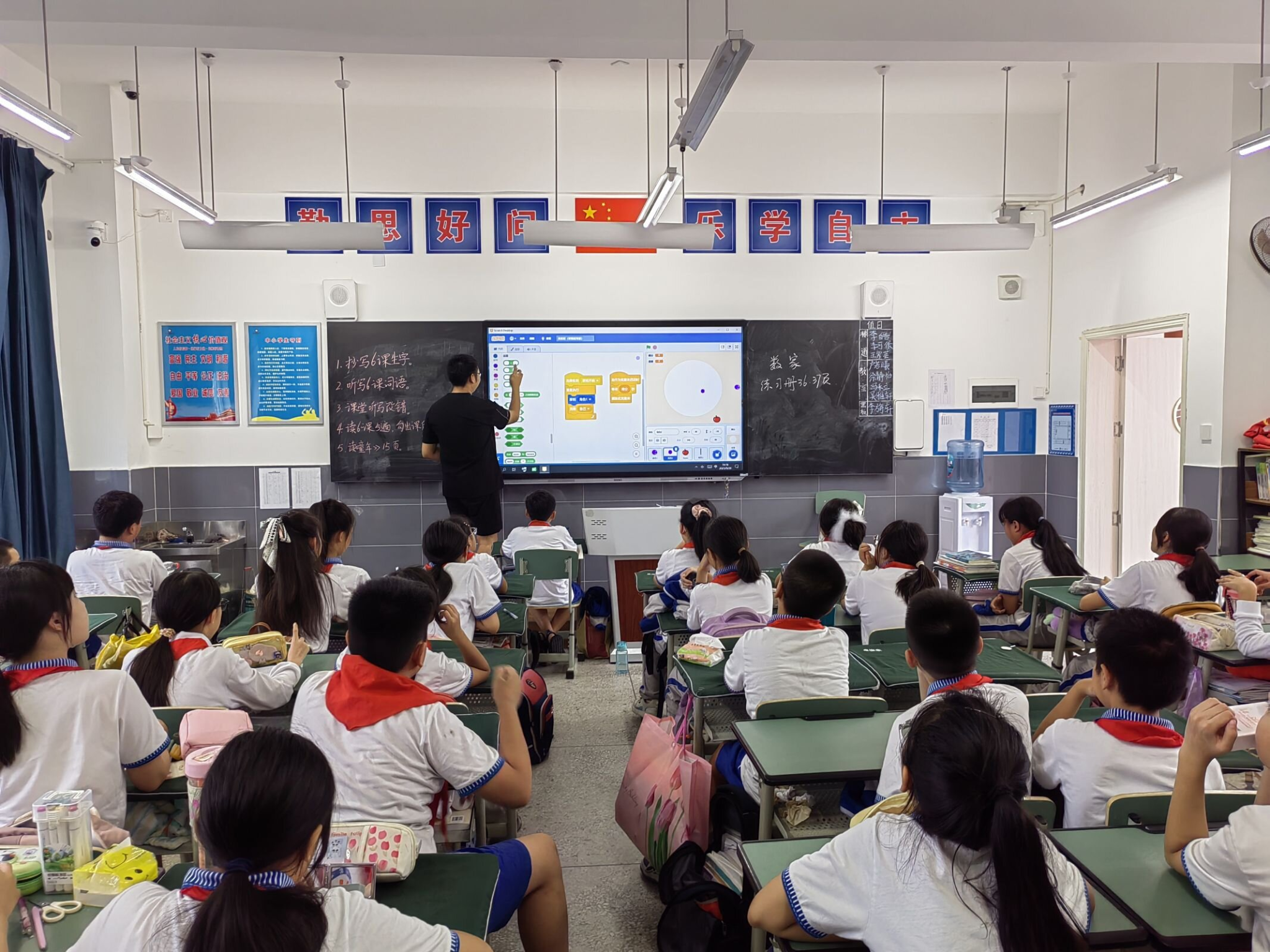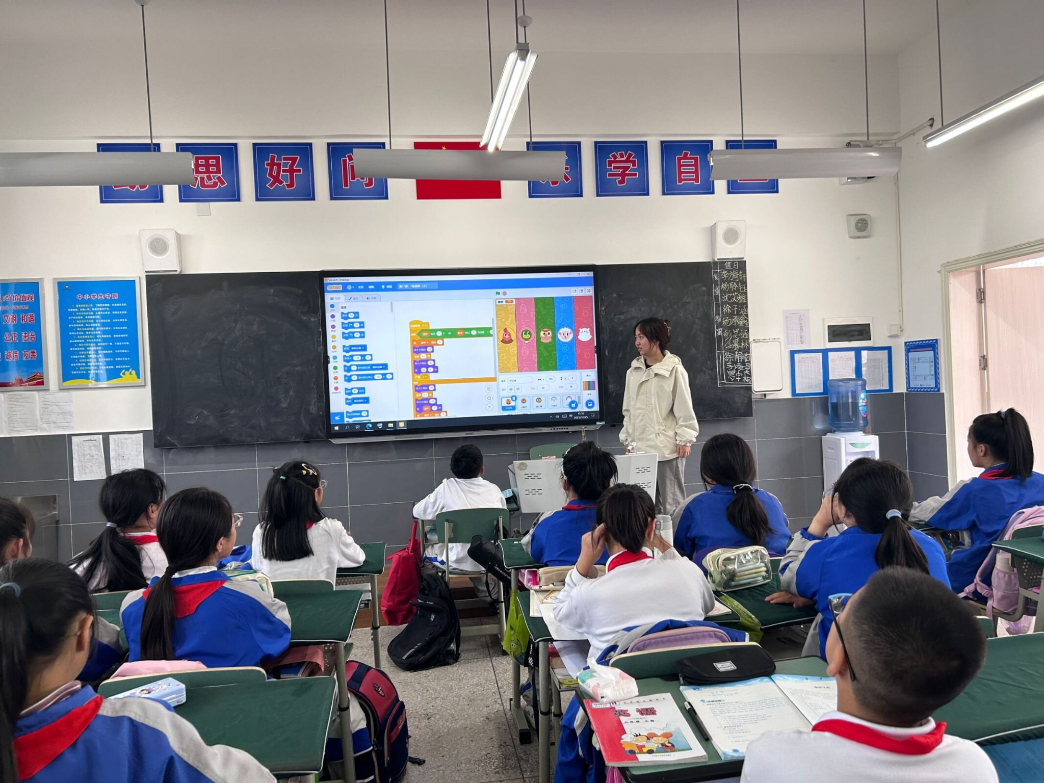 此次教学活动以计算机Scratch编程趣味为主要课程,志愿者们精心设计了与美术、体育、手工等兴趣课程相结合的编程任务,以及情绪调节心理健康、地震逃生演练、古诗品鉴等特色课程,旨在通过多样化的课程内容,激发孩子们对编程的兴趣和热情。