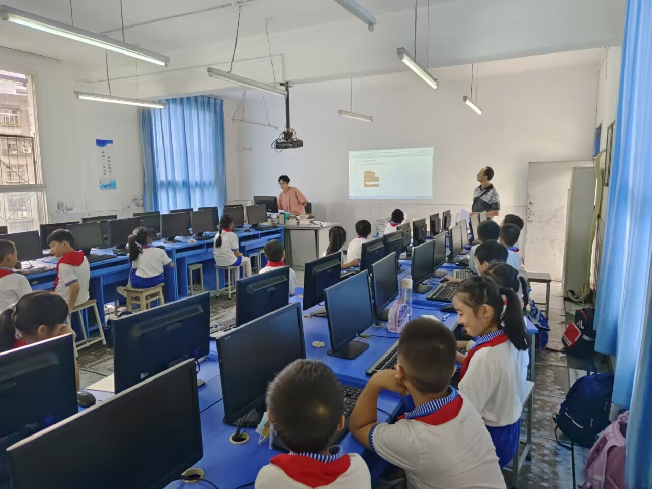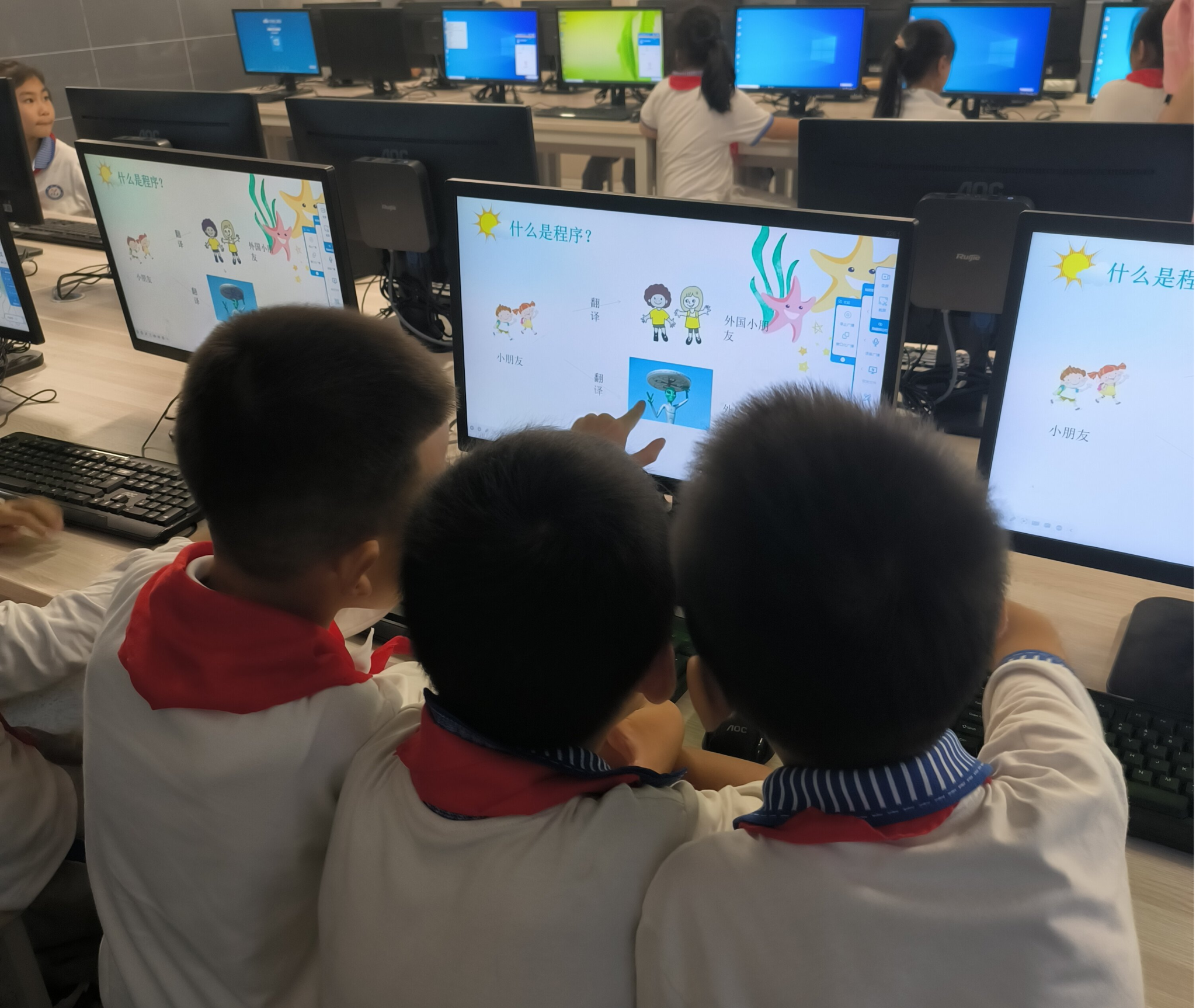 (图为志愿者们上编程课 摄/肖博文)