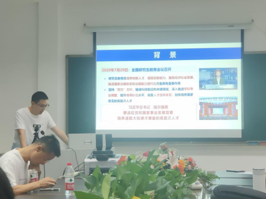 凡志强老师进行《研究生管理制度专题教育》讲座。他从学院研究生招生、培养、学位论文审查、学位授予、奖励与资助、行为规范与管理等环节进行介绍,让2023级研究生新生对学院研究生的各项管理制度有了清晰直观的认识,明确自身发展方向,坚定前进目标。