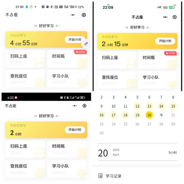 活动伊始,学风建设部在学院内发起“15天图书馆打卡”活动,呼吁同学们一起来感受阅读的魅力。本次活动采取线上打卡方式进行,参与者需通过扫描图书馆座位上粘贴的“不占座”小程序二维码进行打卡,活动期间需至少打卡10天。该活动得到同学们的积极响应,不少同学还上传了读后感,分享自己的所感所得。每一位同学都在活动中充实自我,在阅读中不断成长。