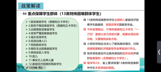 为确保2024-2025学年家庭经济困难认定及资助工作顺利开展,9月19日中午,我院组织召开了线上培训会。会议由学院团委老师杨梅主讲,各小班班主任、班长、团支书和新生班临时负责人参会。