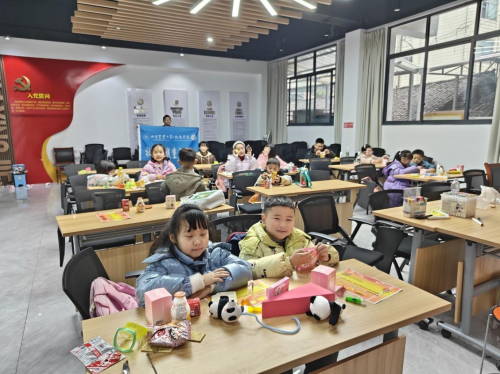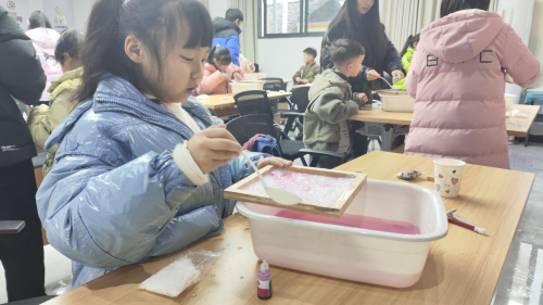 (图为小朋友们体验造纸 摄/赵坤)