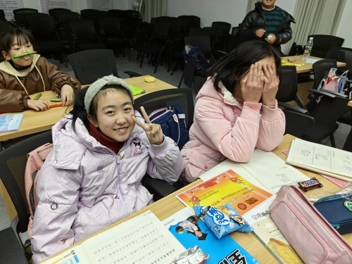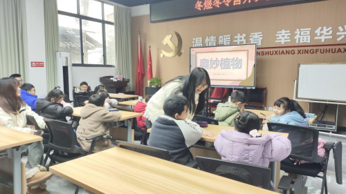 在冬令营的最后一天,小朋友们体验了一场主题为“耕读筑梦家乡”的阅读活动。课堂上,志愿者们通过生动有趣的故事讲解和互动问答等形式,引导小朋友们走进奇妙的阅读世界。小朋友们坐在一起,目不转睛地盯着老师的展示,积极举手回答问题,此刻,志愿者和小朋友大小手紧紧交握,欢笑陪伴,书本照耀思维的焰火将几十颗心脏相系。从课桌到讲台,从聆听到授课,从文字到语言,青涩的我们被引领者指引前路,而今回馈社会正是传递连结。