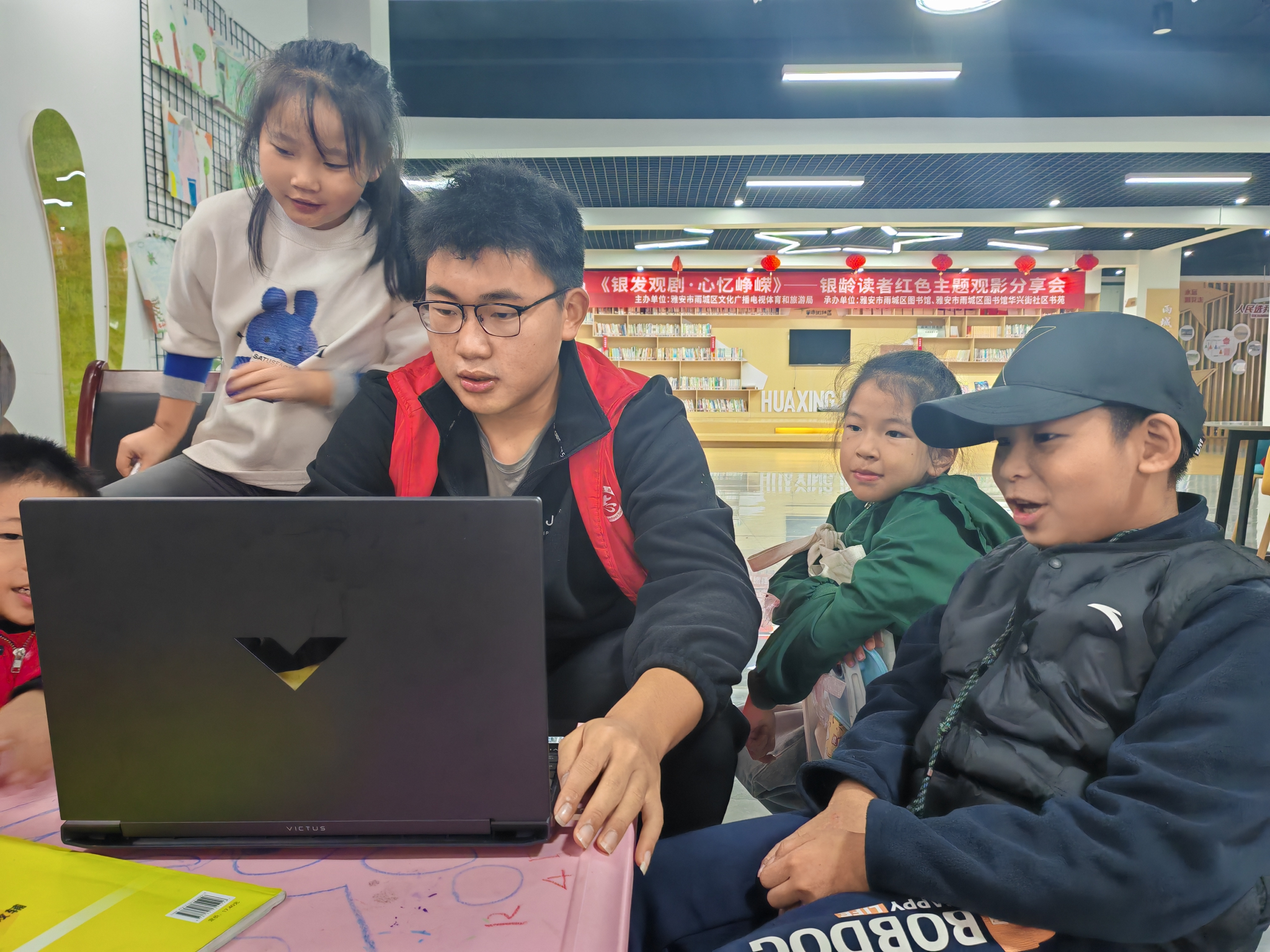 (图为xc体育志愿者进行Scratch编程教学 摄/王新昱)