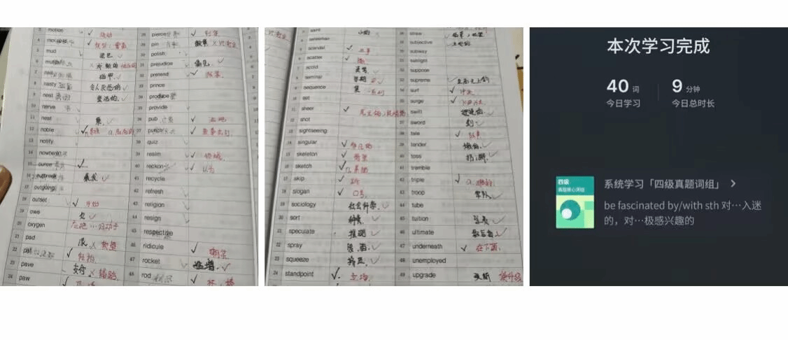 为助力学子高效备战全国大学英语四六级考试,强化应试能力,xc体育团委主办、学风建设部承办的 “词题为刃,笔墨生花” 四六级学习打卡活动于 11 月 18 日正式启动,至 12 月 8 日圆满落幕。活动进行21 天规律打卡,吸引 22 至 25 级百余名同学参与,在校园内营造出互助共进的浓厚备考氛围。