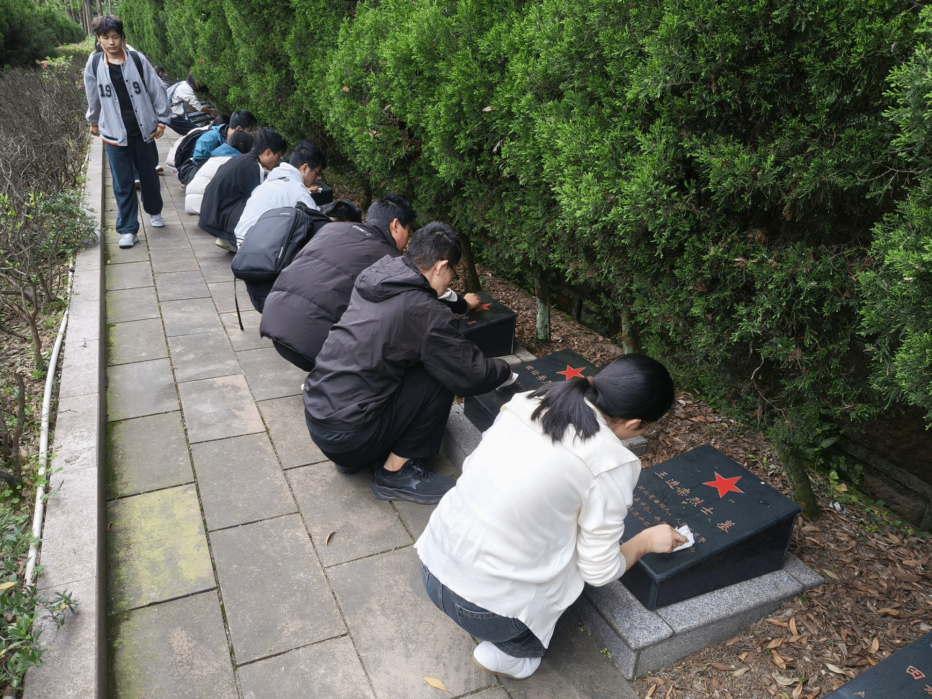 线下以实践践初心,开展多形式志愿服务活动。先锋队聚焦校园环境建设,组织成员开展打扫校园卫生活动,重点清理教学楼、宿舍周边及校园角落的卫生死角,助力打造整洁优美的校园环境;同步开展“整理小乐”志愿服务,为师生提供物品整理、物资归置等便民服务,用细致服务传递温暖;此外,组织成员搜集先锋模范人物事迹,通过分享交流、事迹展示等形式,传承榜样力量;前往烈士陵园开展扫墓活动,缅怀革命先烈、传承红色基因,厚植爱国情怀,切实将“奉献、友爱、互助、进步”的志愿精神落到实处。