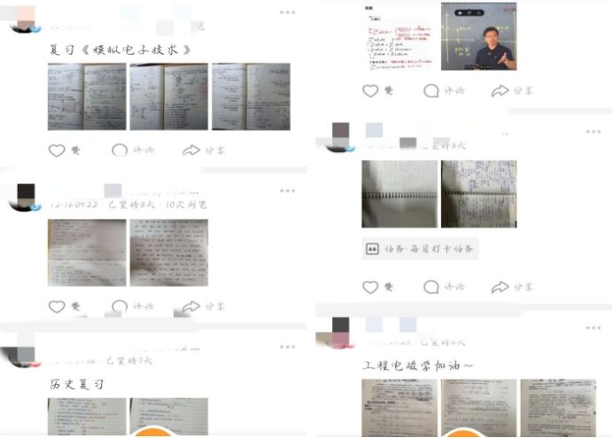 本次期末打卡活动通过线上小程序进行,参与活动的同学需每天上传分享自己的复习情况笔记或照片,累计打卡满10天。“当我想要松懈的时候,一看到小程序上许多同学都在分享今天的复习进程,我就心里一紧,觉得不能落于人后,赶紧翻开书本继续学习。这项活动让我觉得有人一起并肩复习是防止自我懈怠的好方式!”一位同学这样说道。