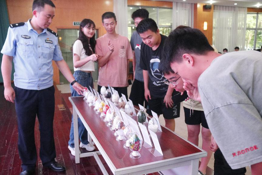 (图为杨教员为同学讲解毒品种类及外观)