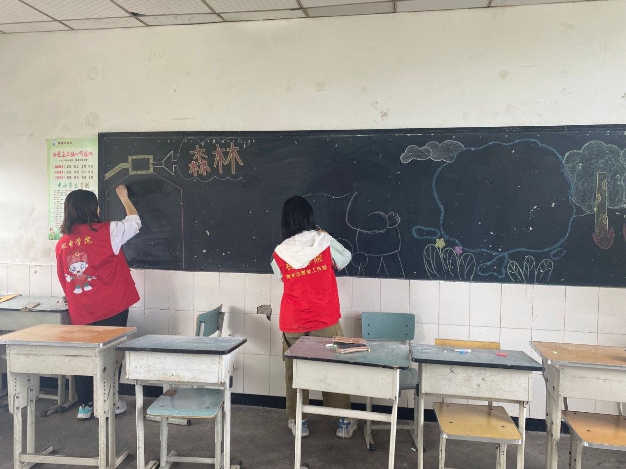 5月1日,为使小朋友们的教室环境更美,增加孩子们美的熏陶,院团委志工部组织13名志愿者前往南郊乡中心校开展“绘心公益”黑板报创作活动。