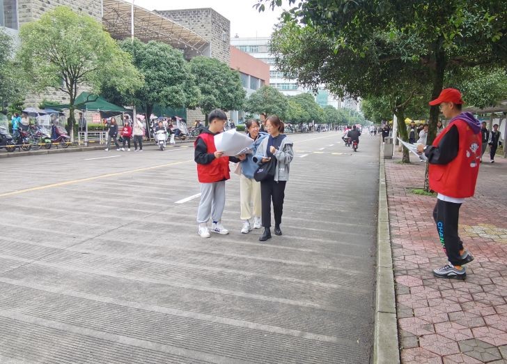 (图为志愿者们为同学宣传 石熊敏 摄)