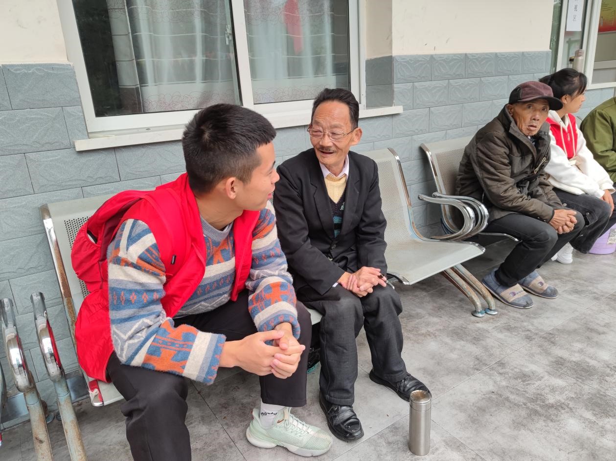 (图为志愿者与老人在院子里聊天 钟浩然 摄)