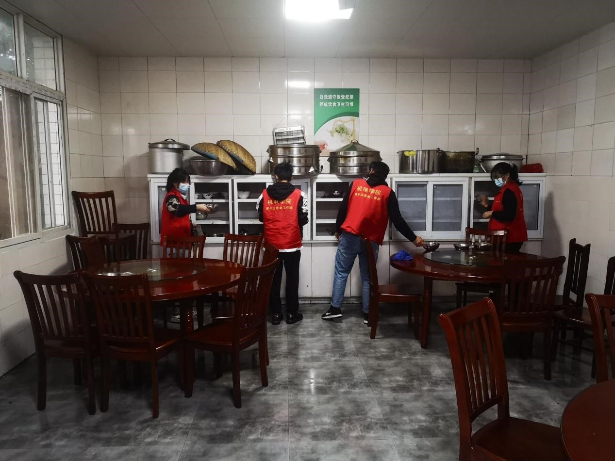 (图为志愿者打扫餐厅 李佳舟 摄)