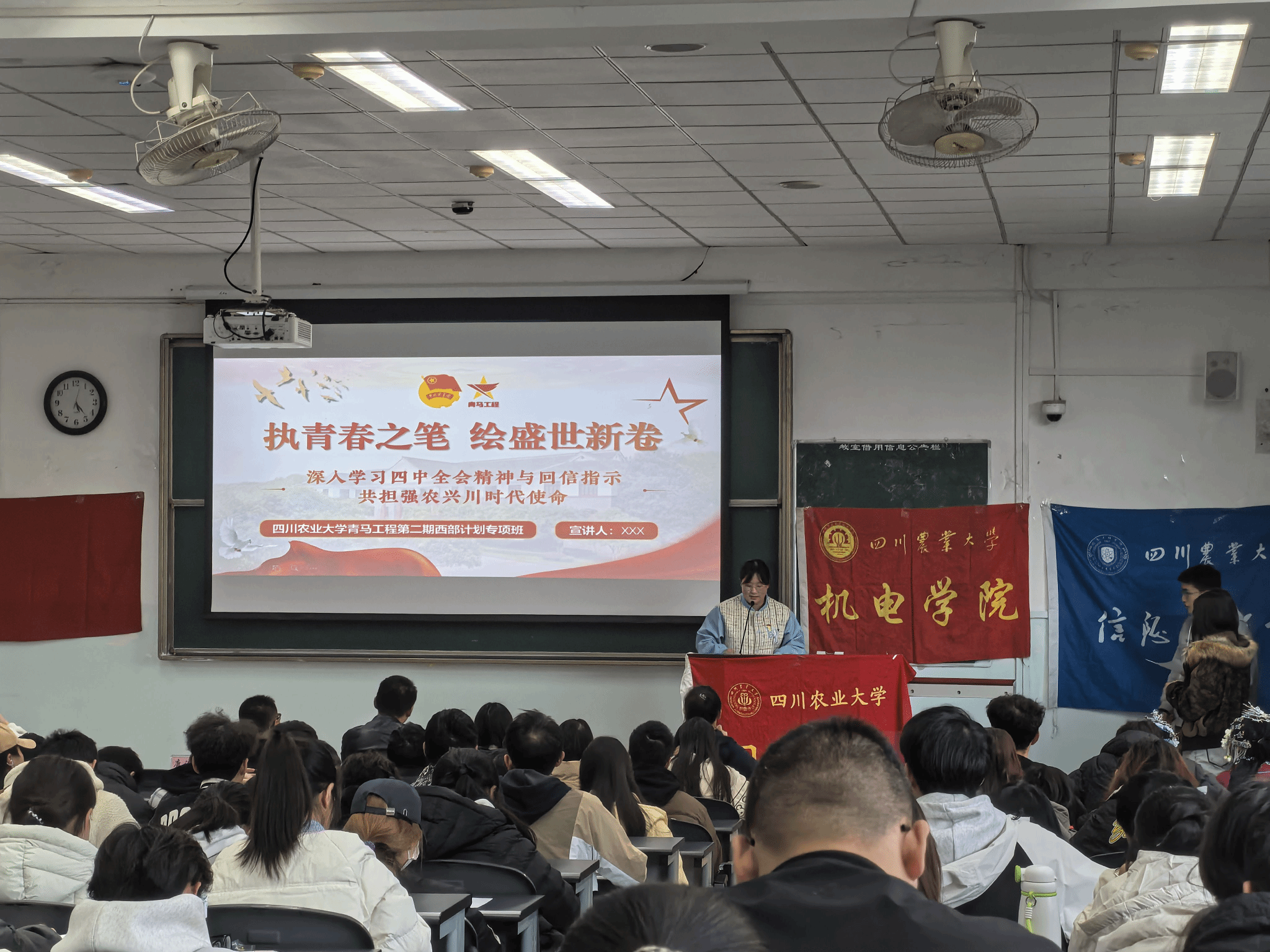在思想宣讲与实践成果展示环节,青马班学员刘奥雅紧扣二十届四中全会精神与习近平总书记给中国农大的回信精神,结合川农办学特色,阐释了 “知农、爱农、强农、兴川” 的青年成长路径,宣讲逻辑严谨、内涵深刻;信息工程学院王萍分享依托科技赋能彝族地区医疗发展的实践故事,彰显青年服务基层的责任担当;xc体育组发部邵雨琦展示活动前期实践成果,直观呈现了实践育人的显著成效。