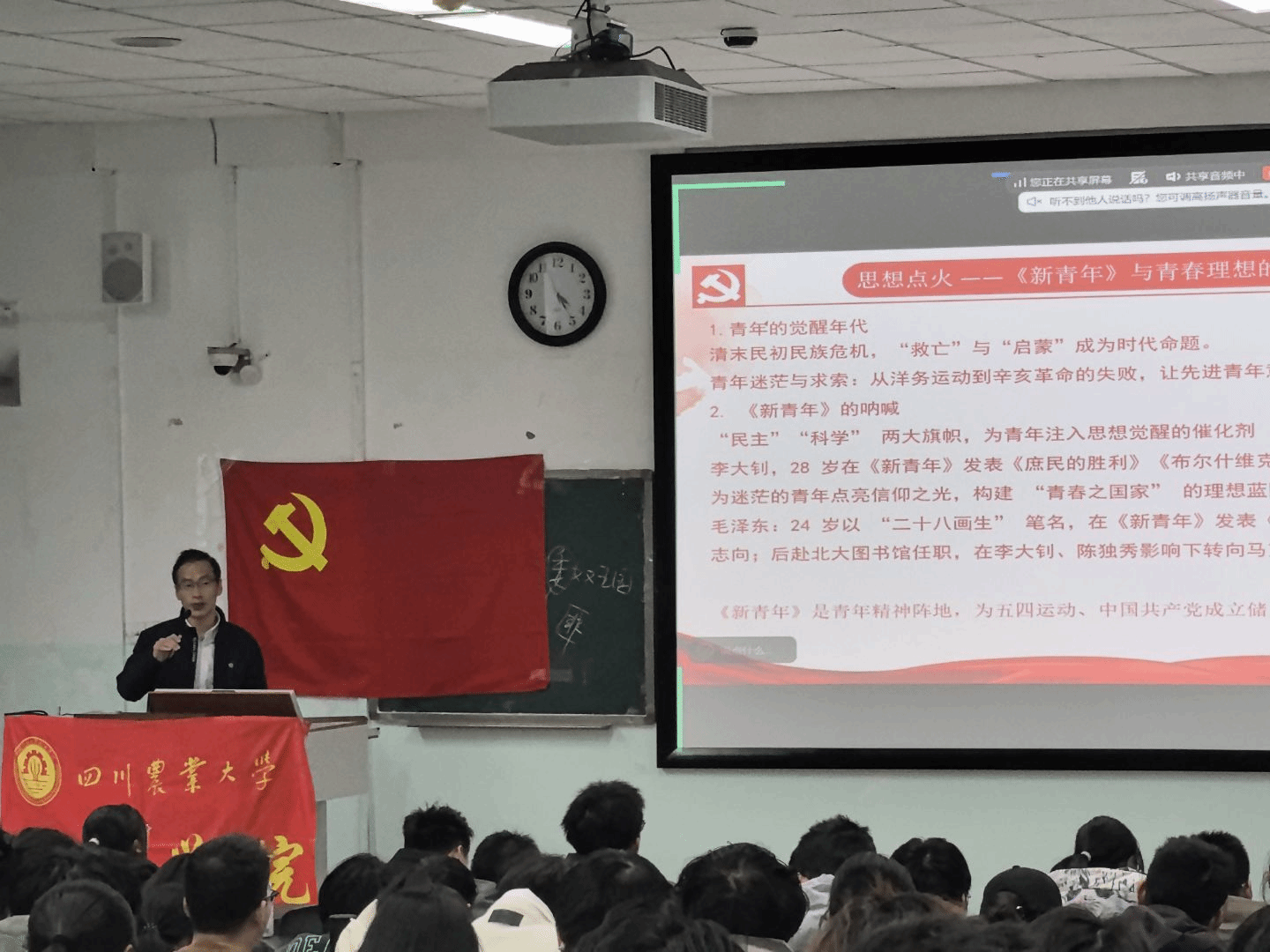 培训中,陈建锋老师围绕“12.9”运动爱国精神,紧扣“铁肩担道义,妙手著文章”的精神传承,从《新青年》点燃青春理想,到“12.9“运动爱国精神的燎原,引导川农学子将爱国情怀融入实际行动,担当时代使命。
