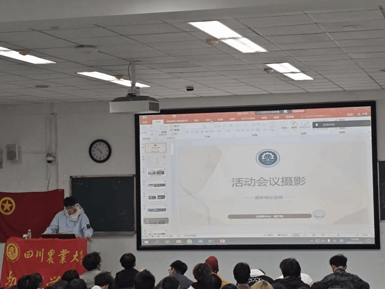 为夯实团学新生干事的工作基础,提升其综合业务能力,2025年11月25日,xc体育第11期团校第四讲在10教A201、A202教室如期举行。本次培训以员工手册领学为核心主题,邀请全媒体中心魏宇航担任主讲,为全体团学新生干事开展专业摄影技能培训,助力新生干事快速掌握工作必备技能,适应团学工作节奏。