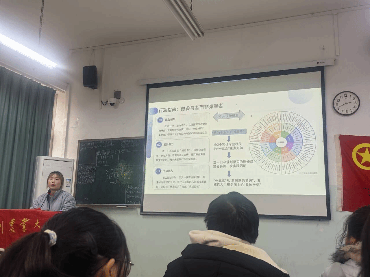 实践环节中,唐老师给出三大行动指南:一是研读政策、绘制 “专业 + 规划” 适配表,找准个人与国家需求的契合点;二是选修感兴趣课程、参与竞赛调研,筑牢专业与实践根基;三是借助西部计划、“三支一扶” 等平台,以所学服务社会。